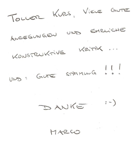 (Fast) alle da... ![]() ...auch die Unterlagen ![]() Konzentration ![]() Okay, was machen wir heute? ![]() ♩ ♪ ♫ ♬ ♭ ♮ ♯ ![]() Performanceübungen mit Selbstkontrolle per Video ![]() | ||